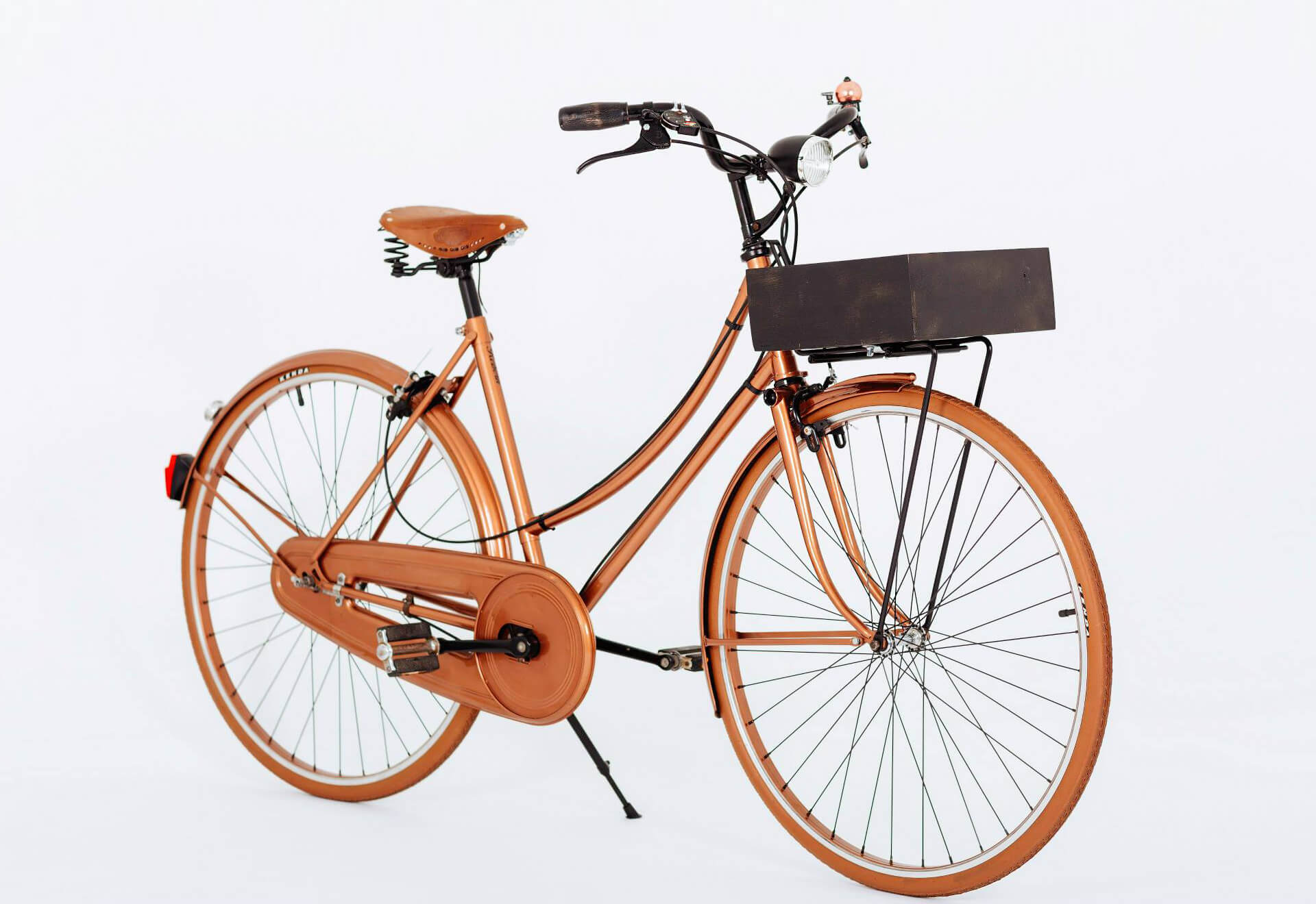 Raleigh Superbe women's bicycle from '81 reborned from its own rust, therefore the “copperish” outfit that came as a tribute and, last but not least, as a personality mark. This beauty was all rust and oblivion when discovered in a huge pile of old bicycles. We restored it piece by piece and we saved almost all of its parts. It now has a brand new Brooks saddle, a wooden box in front instead of a classic basket and custom wooden grips.